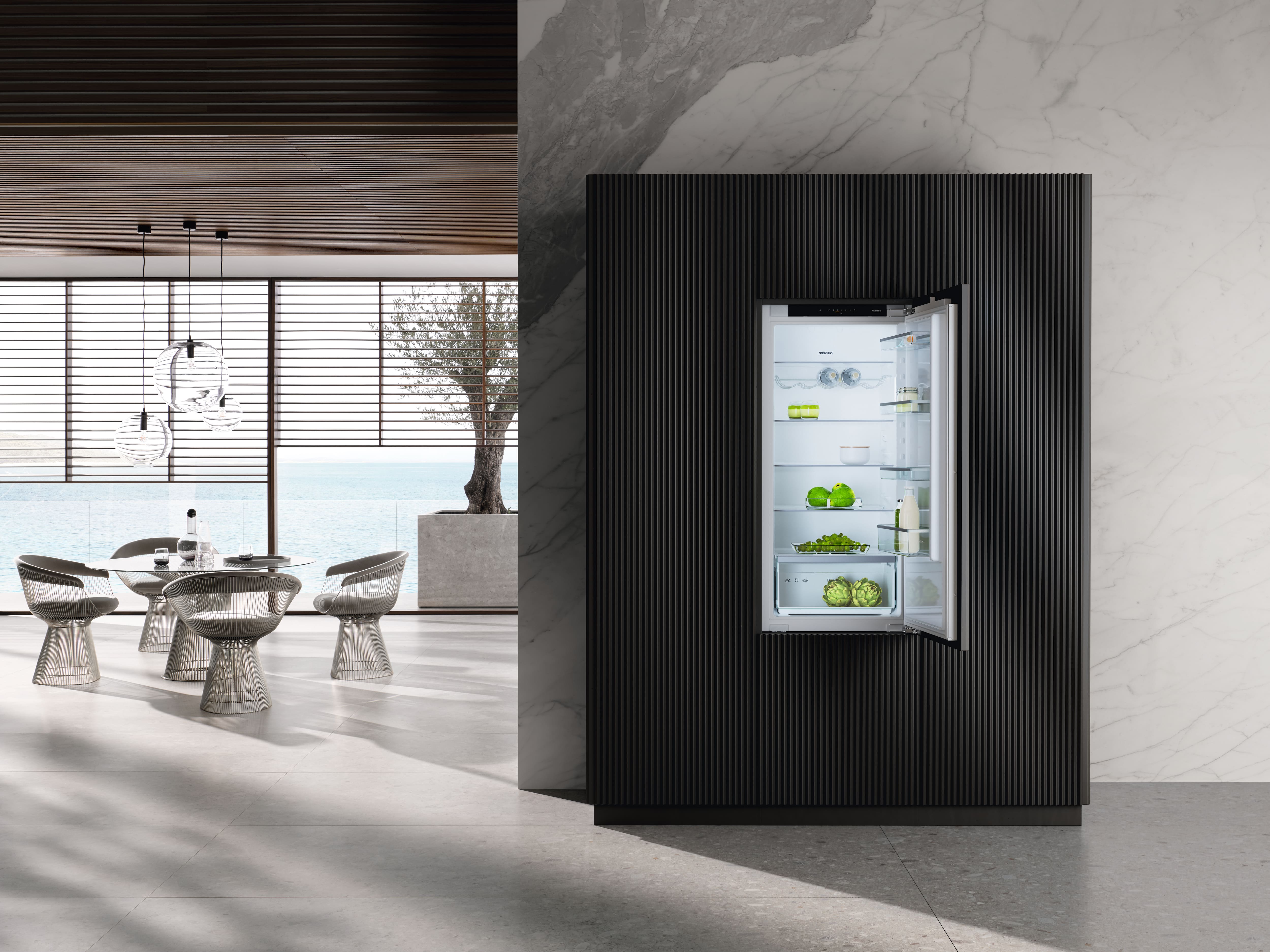 Встраиваемый холодильник с системой DailyFresh, светодиодным освещением, функциями SoftClose и SuperCooling для большего удобства.