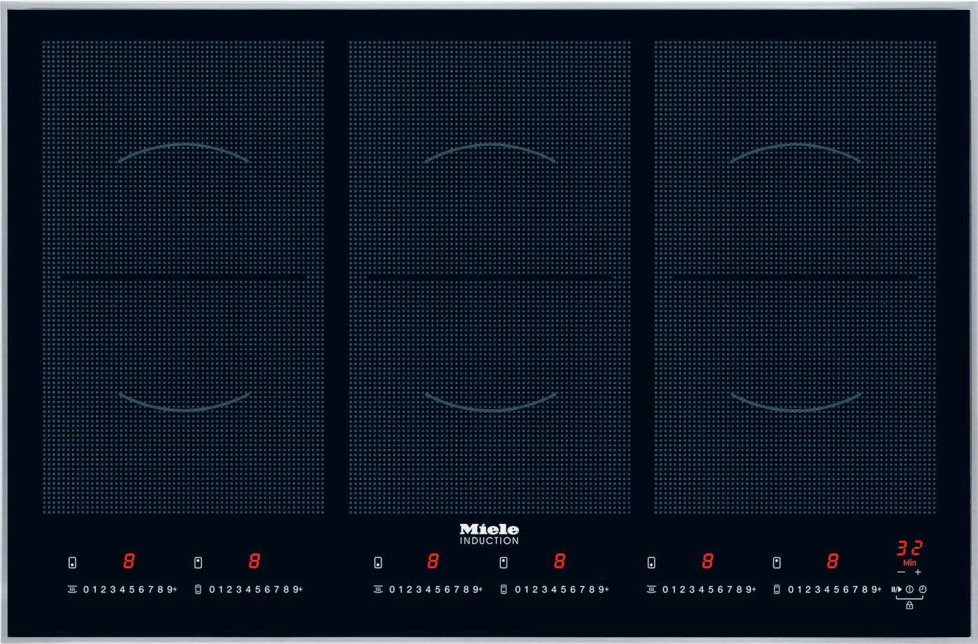 Широкая выступающая рамка 6 индукционных конфорок с автоматикой закипания, в т.ч. 6 с возможностью объединения в 3 зоны PowerFlex Сенсорная панель управления с отдельными клавишами 0-9 для каждой конфорки Ступени мощности 1-9 Функции Stop&Go, TwinBooster Con@ctivity 2.0 Функция поддержания тепла Защитное отключение Защита от перегрева Размер ниши (Ш x Г): 780 x 500 мм (вырез ступенькой) Страна-производитель: Германия Гарантия 2 года