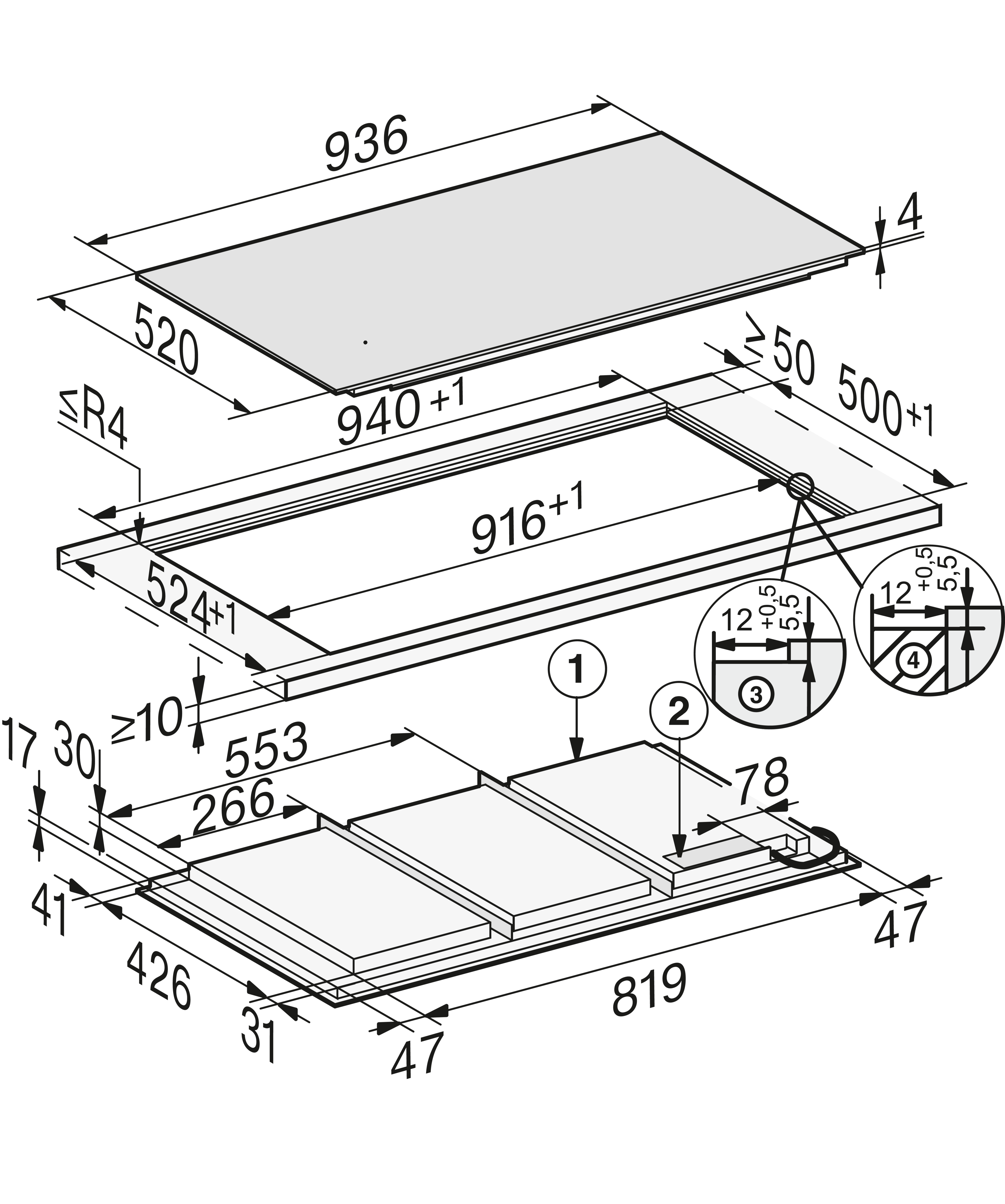 Индукционные панели конфорок со встроенной вытяжкой