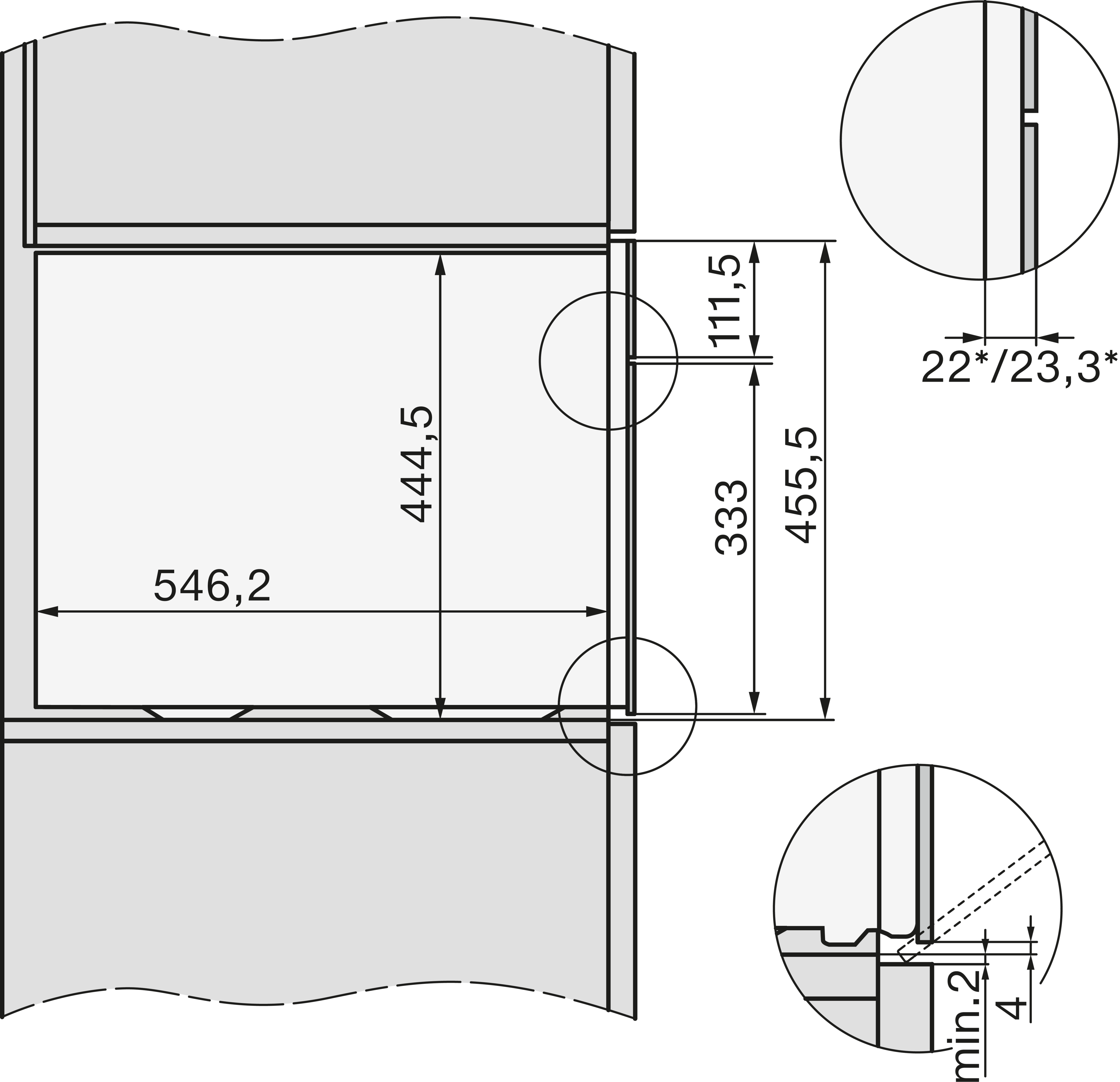 Минимальная высота ниши, мм