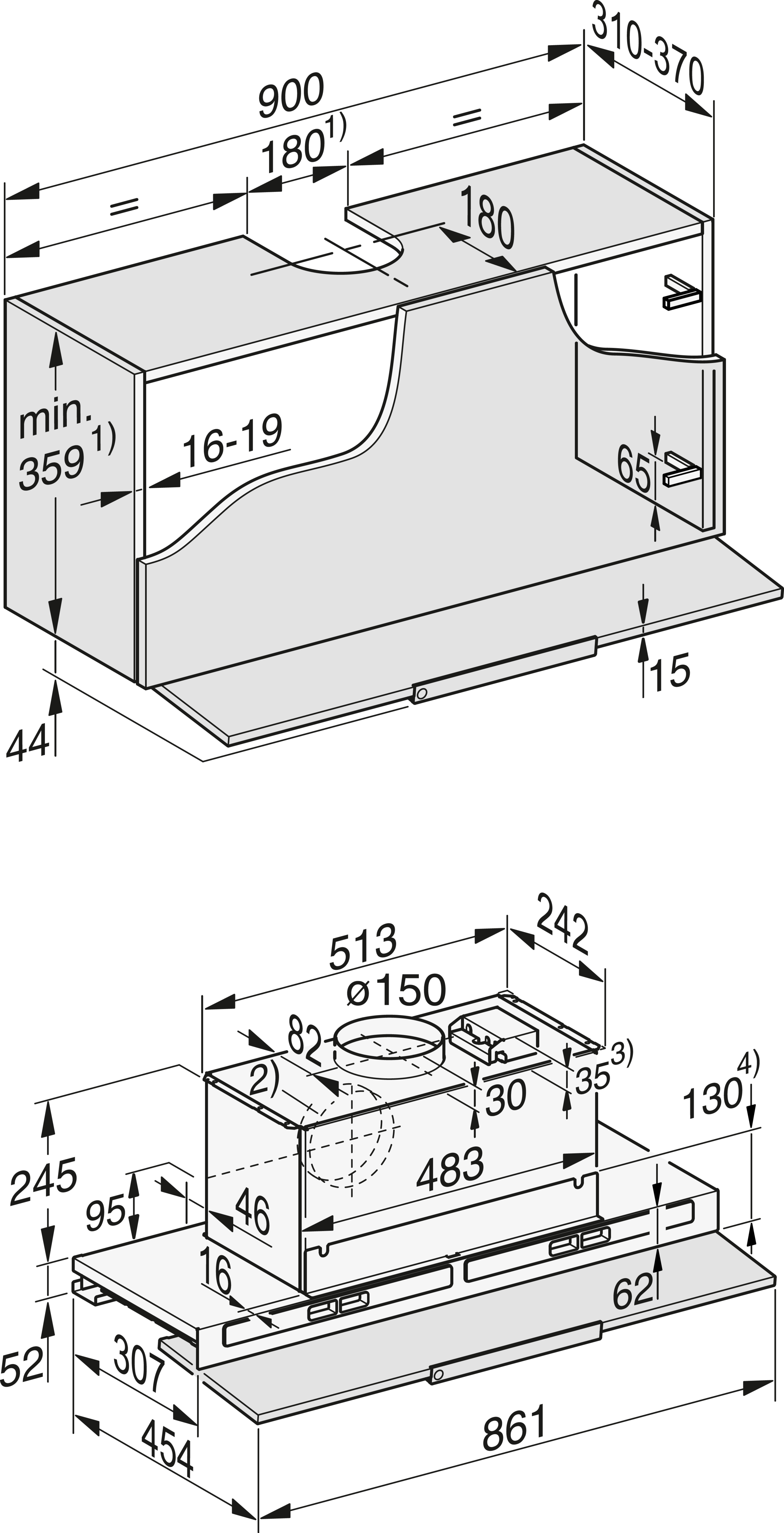 Установка встраиваемой в мебель бытовой вытяжки